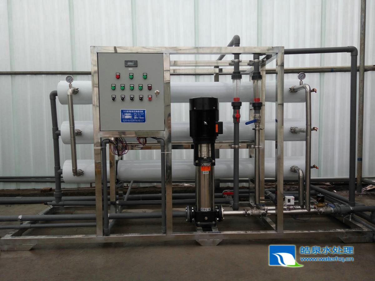 反滲透膜設(shè)備利用RO膜的高脫鹽性能能徹底除去過(guò)去純水制造工藝中較難去除的TOC,SiO2、微粒子及細(xì)菌。同時(shí),又徹底省掉離子交換再生酸堿消耗、免除酸堿排污污染及避免離子交換層中細(xì)菌、有機(jī)物的二次污染。經(jīng)反滲透處理后的水,能去除99%以上的溶解性固體,99%以上的有機(jī)物及膠體,去除100%的細(xì)菌。
